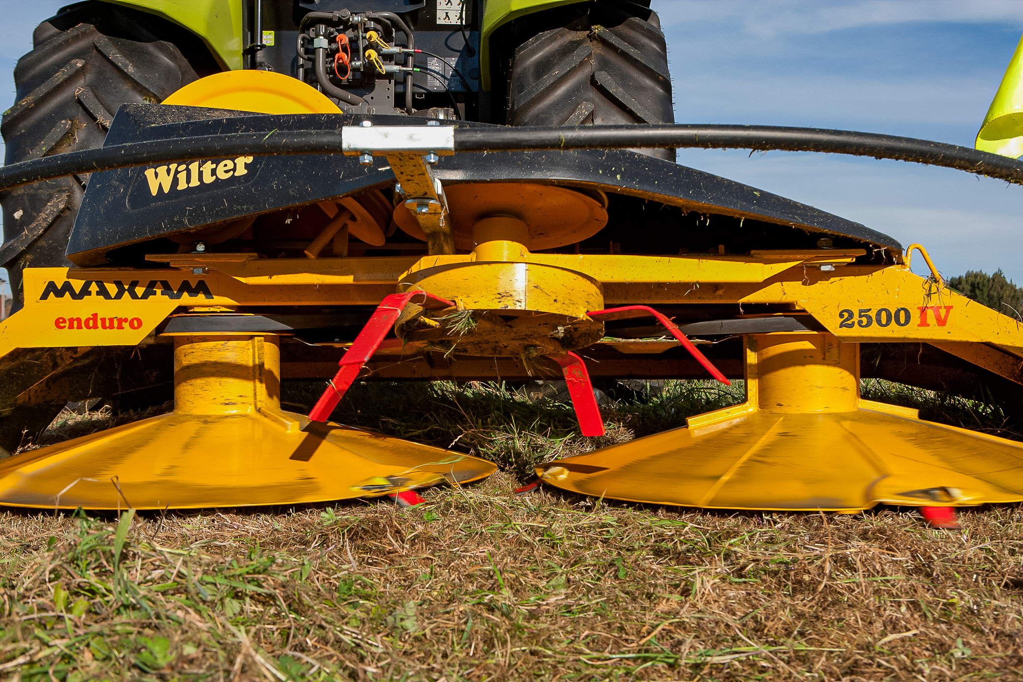 The 2500IV mower and Wilter spreader combination is unique worldwide. The clean cut grass is fed from the cutting drums into the Wilter tynes, which toss the grass so any clumps are broken up and the heaviest grass lands on top for the most exposure to the elements for quick and even wilting. The wilting time of crops conditioned and spread by the Wilter is faster than any other system including mower conditioners.